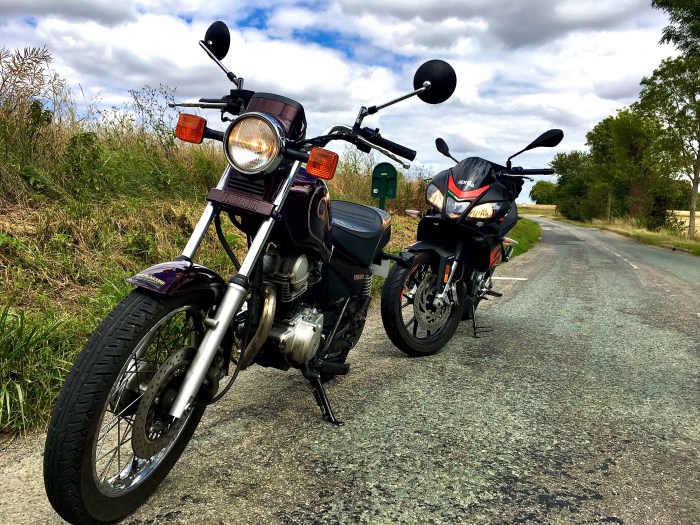 Mon ami François est un motard depuis longtemps, moi depuis peu. Nous avons tous les deux une 125cc. Celle de François est récente et monte à 130km/h. La mienne est de 1997, ce que l’on appelle vintage et ne dépasse les 85 km/h qu’en descente et avec le vent dans le dos.