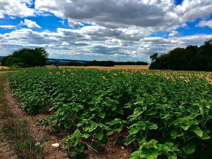 Nous avons tourné sur les petites routes autour de Magny. En pleine campagne, nous nous sommes arrêtés au milieu de nulle part, un champ de tournesols encore jeunes mais déjà bien tournés vers le soleil, un champ de pois bien secs et personne aussi loin que nos regards portaient. Seuls au monde, si des chasseurs n’avaient pas eu l’idée saugrenue de tirer deux fois sur je ne sais quelle pauvre bestiole. Même au bout du monde, la méchanceté a des tickets d’entrée.