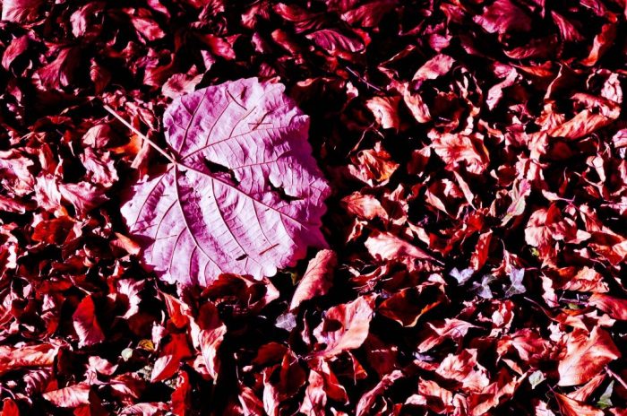 Afin d’illustrer mon article, J’ai fouiné dans ma médiathèque personnelle. L’évidence est terrible, pas une seule photo de têtes d’hortensias brunes. J’aurais été Salvatore dans le Nom de la Rose, je me serais sans doute flagellé tout de go en jargonnant moult prières. N’étant pas moine je remplace les photos manquantes par des feuilles mortes.
