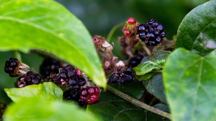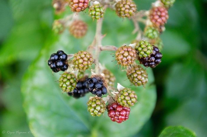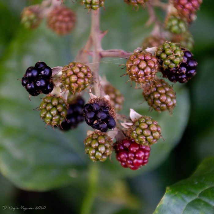 Différents stades de mûrissement des mûres / Different stages of ripening of blackberries