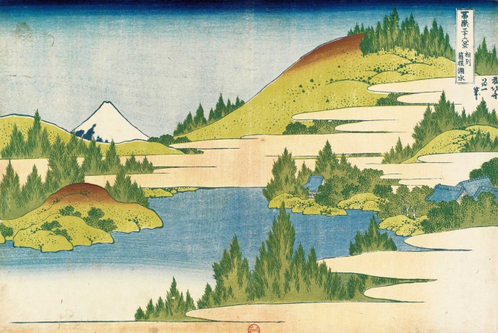 Série des 46 estampes du Mont Fuji par Katsushika Hokusai dit Hokusai 37/46-Chantier de bois près du canal Tatekawa à Honjo [Edo] (Honjô Tatekawa) La construction bat son plein. Hokusai montre les travailleurs en action, toujours sous le regard de Fuji San. Pour une fois, on est en ville. Les piles de « buches » ou de …