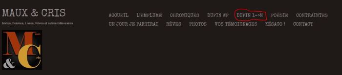 J’espère que cela sera plus simple pour mes lectrices et lecteurs adoré(e)s, vous sans qui Dupin n’existeraient plus. Merci à vous et laissez-moi des commentaires.